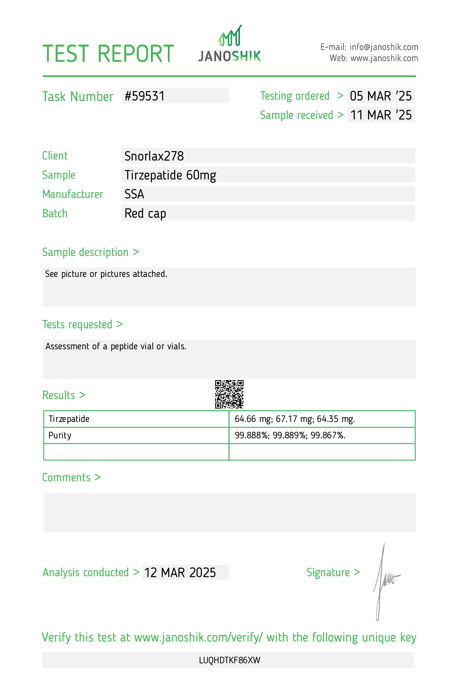 BleauGenics Tirzepatide is a high-purity synthetic polypeptide offered in lyophilized powder form for research applications. With a tested purity of 99.8%, this compound is ideal for laboratory studies exploring mechanisms related to metabolic regulation, GLP-1/GIP analogs, or peptide stability.